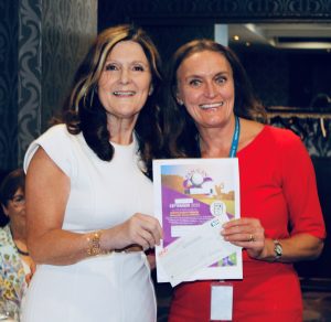 Pictured is Ann Baldrey presenting the fundraising proceeds to Helen McVeigh, Development Director, St. Vincent’s Foundation